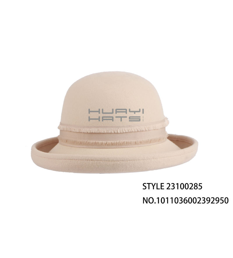 This custom-made fashionable raised brim bowler hat with hat band is made of 100% Australian wool, which is a high-end and comfortable material. The dome hat shape and the raised brim design make it more elegant and stylish. It is more fashionable when paired with a hatband of the same color. This dome hat can be customized in multiple colors. Welcome to order.
