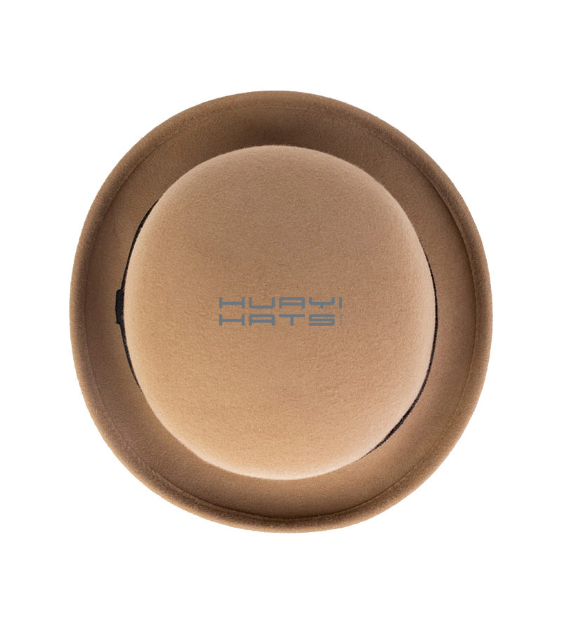 Womens Bowler Hat Camel Color Wool Felt Derby Hat With Black Ribbon