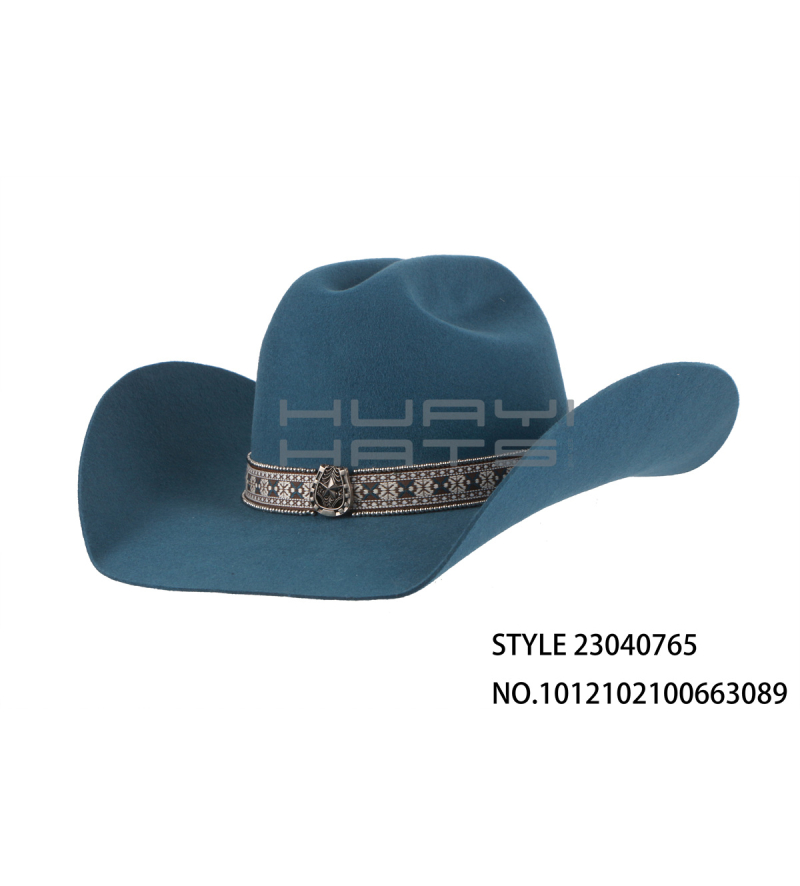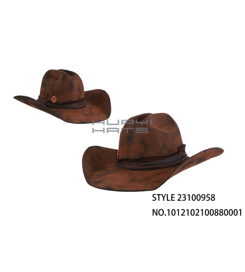 Custom Fashion Black Cowboy Hat With Leather Trim Strap