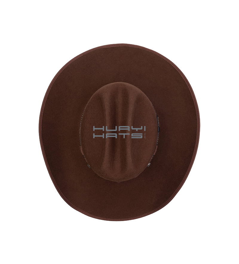 Fashion Mens Brown Durable Wool Felt Cowboy Hat With Stiff Wide Brim Light Waterproof Naturally