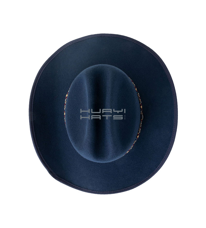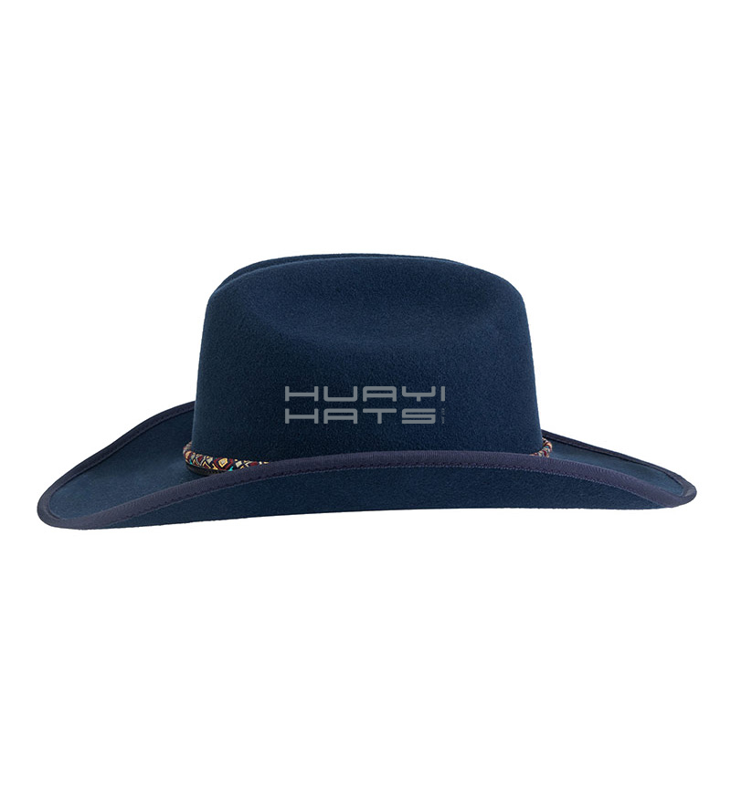 High Quality Wool Felt Navy Blue Wide Brim Cowboy Hat For Womens