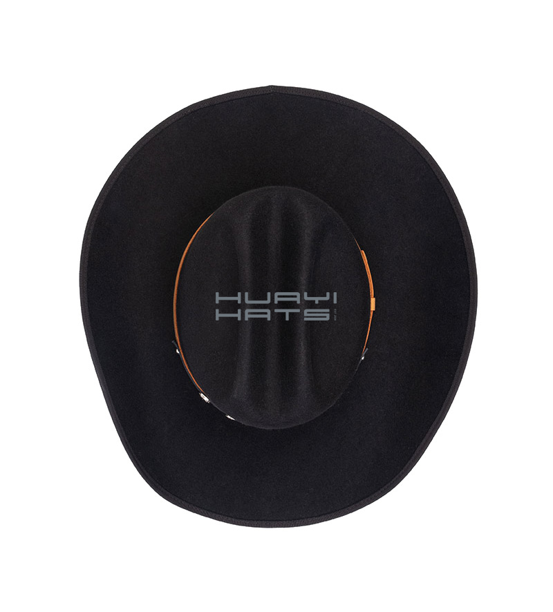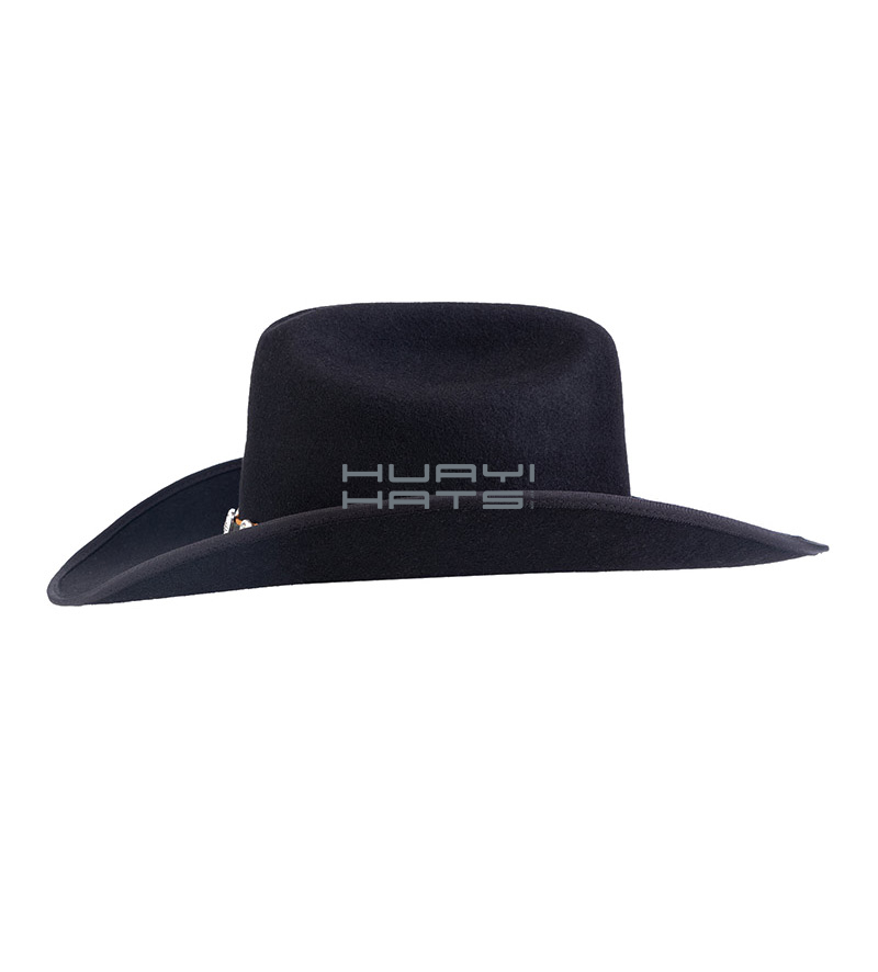Mens Black Wool Felt Hat Cowboy Hat With Stiff Wide Brimmed Customized Size