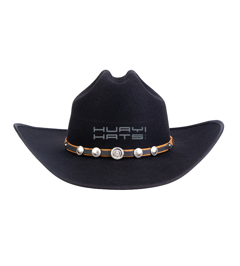 Selecting a fashion cowboy hat like the Huayi black felt hat will prove a wise decision for years to come. With authenticity and simplicity in mind, we wanted to design a cowboy hat that could be worn anywhere. This black felt hat is ethically made using 100% Australian wool felt. And it features a stiff brim. The sweatband is sewn in creating this extremely versatile hat. It had to be stylish for men. The perfect hat to wear out on those sunny days when a little bit of sun protection goes a long way. Great for warm or winter cold weather and less worries about getting wet.
