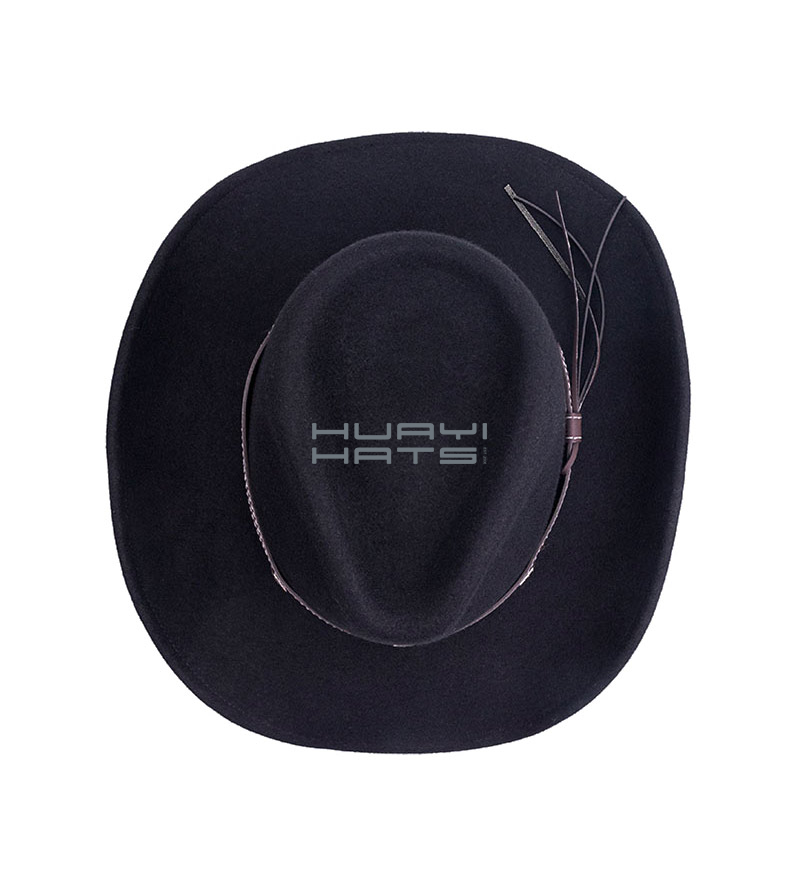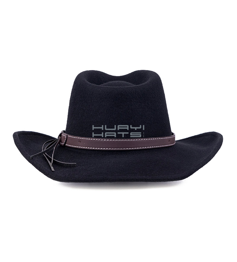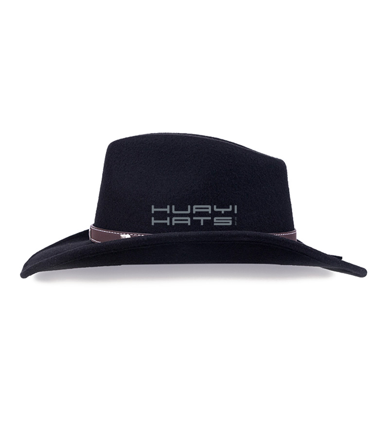 Selecting a fine cowboy hat like this mens black cowboy hat will prove a wise decision for years to come. It features a cattleman crease hat crown and a wide brim. Crafted from 100% Australian wool felt, this hat has a hard yet durable construction that'll provide protection from the sun's harmful UV rays. It also comes with a leather hatband that adds a classic touch to the headwear for a statement piece that captures true western styling. It's perfect for all outdoor activities.