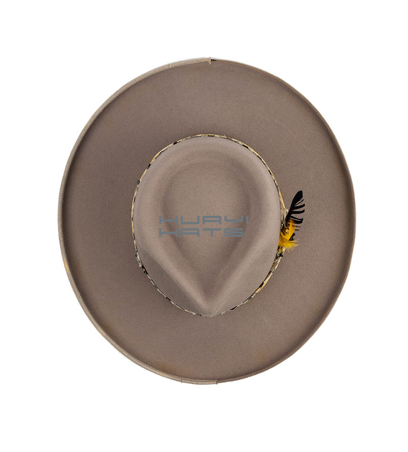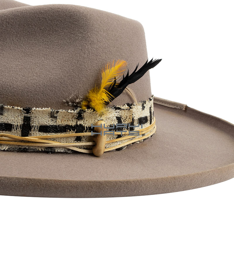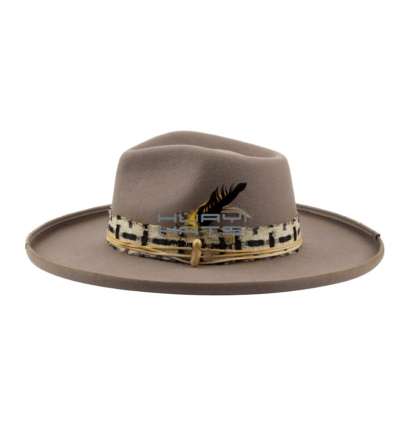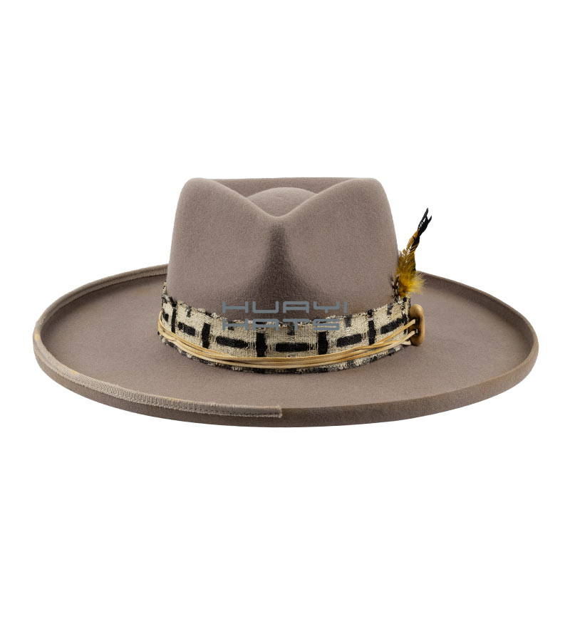This mens felt fedora hat with a modern center dent crown that allows the crown to follow the shape of the head more closely, resulting in a more contemporary and comfortable fit. Wide brim to provide the maximum protection from the elements. It's water repellent, but should not be worn in heavy rain as this may cause it to lose some of its distinctive shape. And this men's felt hat is handmade in Huayi Hats from 100% premium Australian wool felt in ethical conditions. Results in a breathable and natural finish.