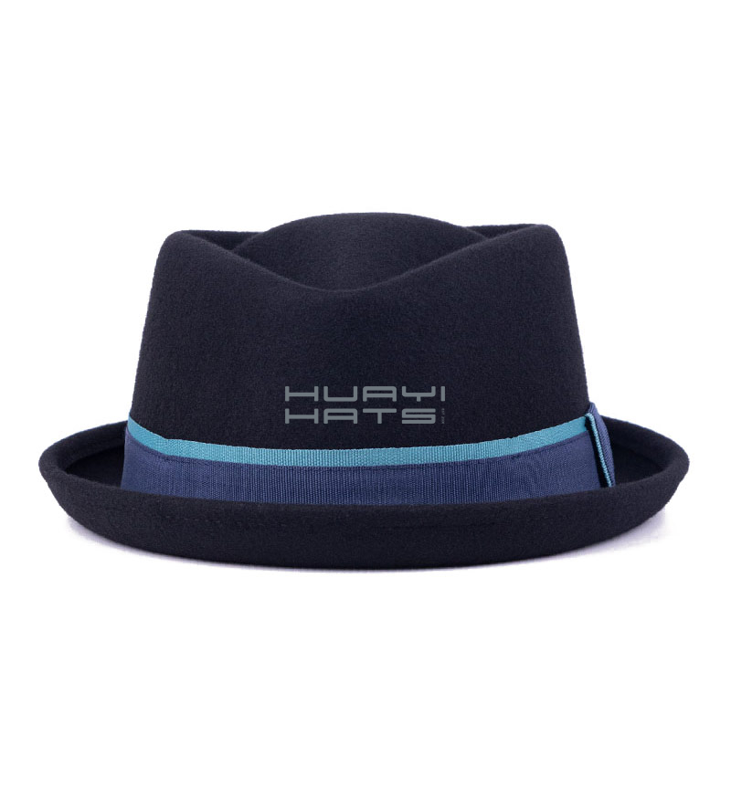 Good Quality Boys Wool Felt Fedora Hat With Blue Hatband & Short Curled Brim