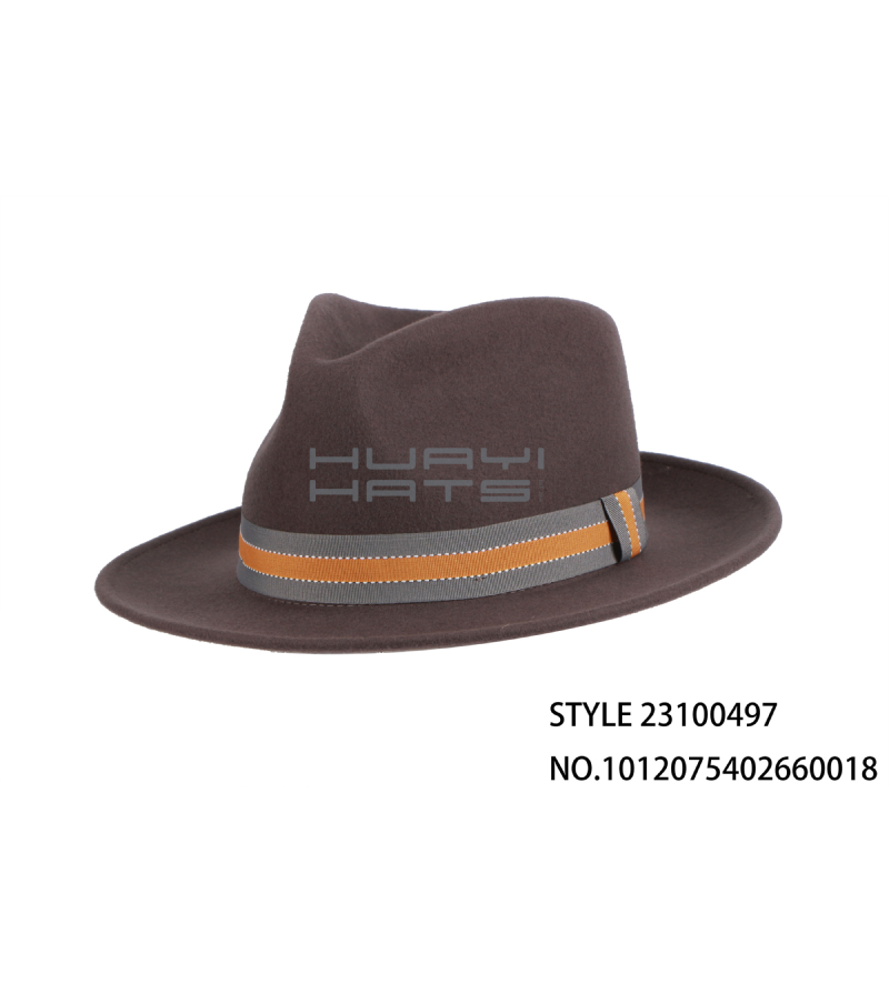 High Quality Mens Wool Felt Fedora Hat With Decorative Hatband