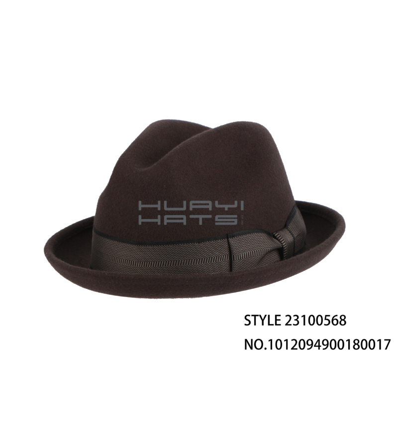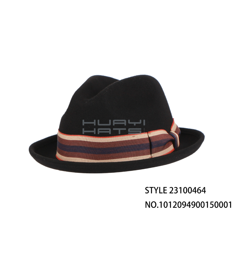 Mens Fashion Short Brim Wool Felt Fedora Hat With Hatband Customizable
