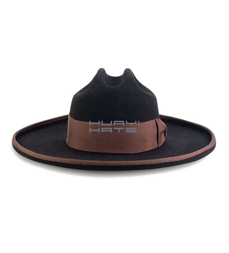 This well-made mens wool felt hat has a wool felt body with a comfortable grosgrain ribbon bowknot and an unlined interior. It features a cattleman crease hat crown and a pencil brim. Selecting a fine wool fedora hat like this wide brim felt hat will prove a wise decision for years to come. Highest caliber Huayi hats are painstakingly made to meet the most exacting of standards. Great for cold weather and less worries about getting wet. Live the life of luxury with this hat.