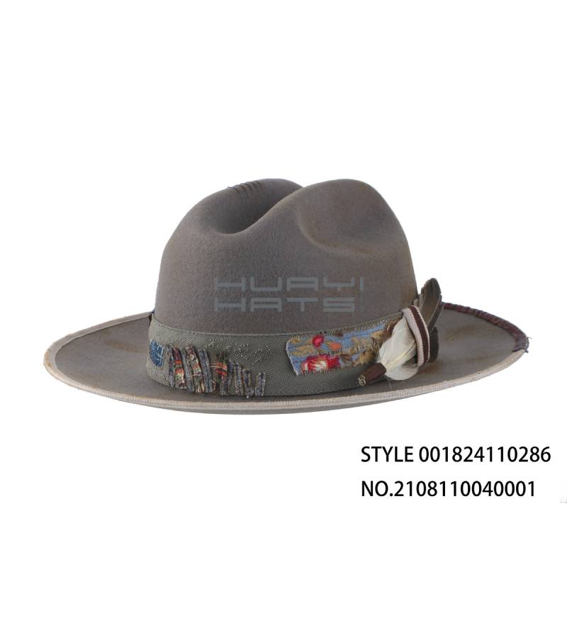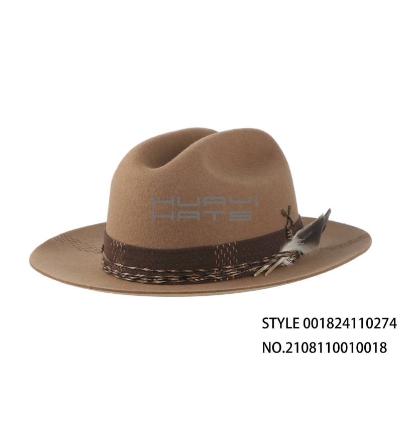 HY Vintage Style Wool Fedora Hat With Raised Brim