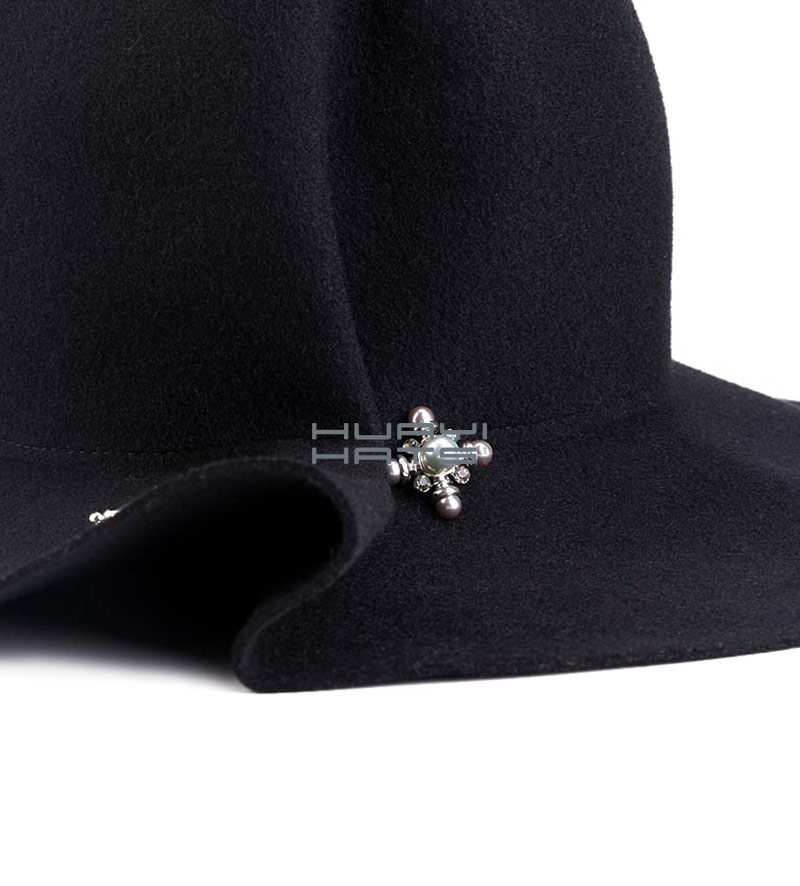 This womens black floppy hat has just the right amount of "flop" not so much that it falls in your eyes but enough to make it look nice and not too rigid. It's made of 100% Australian wool felt. It has a ribbon on the inside, which allows you to customize the fit. It features a pin on the floppy brim. This oversized wide brim floppy beach sun hat provides both perfect protection and a stylish, fashion look. Design of this elegant party hat: Very stylish, floppy brimmed sun hat. This womens floppy hat is great for fall or winter.