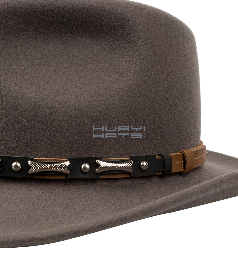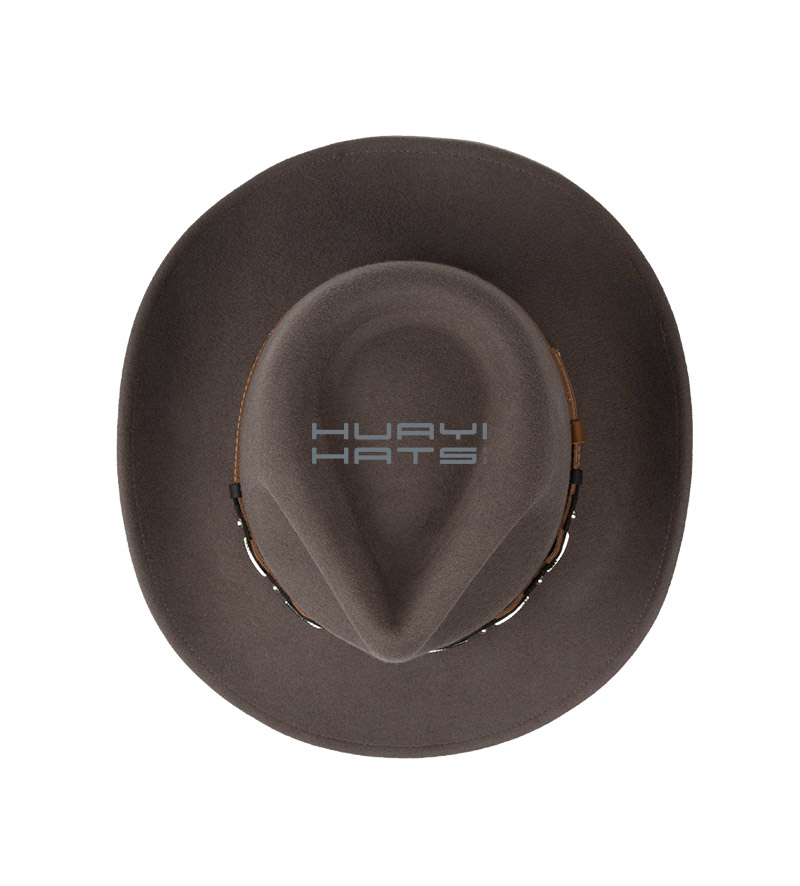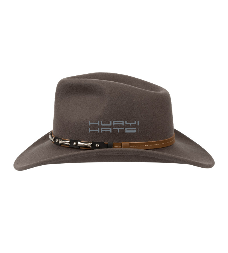 100% Wool Felt Made Outback Hat With Leather Hatband And Twill Sweatband For Mens