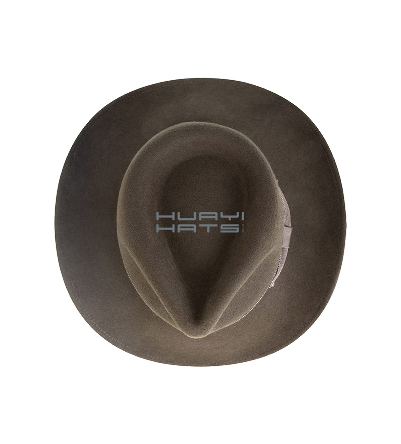 Mens 3" inches brim Brown Wool Felt Outback Cowboy Hat With Bowknot