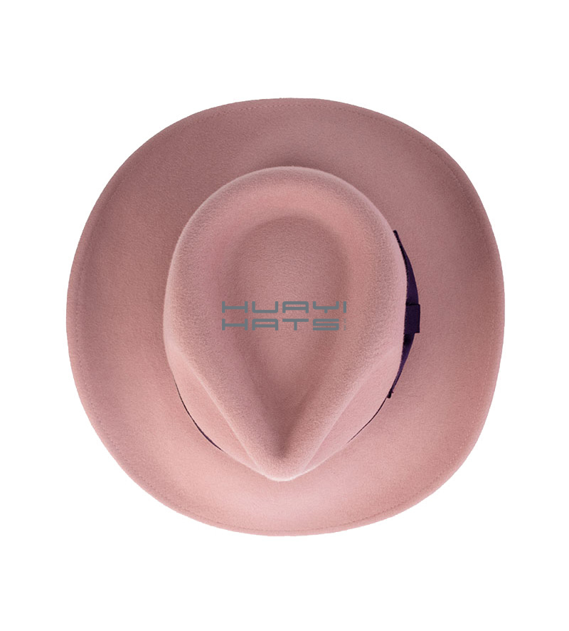 Womens Wide Brim Pink Wool Felt Western Cowboy Outback Hat