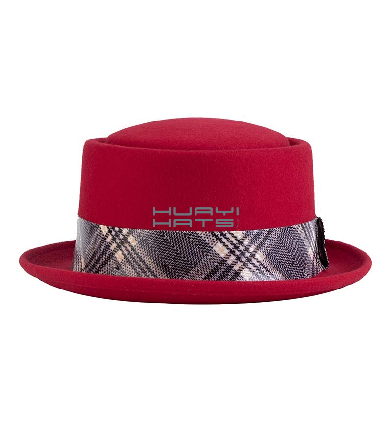 100% Wool Stingy Brim Red Felt Pork Pie Hat comfortable to wear