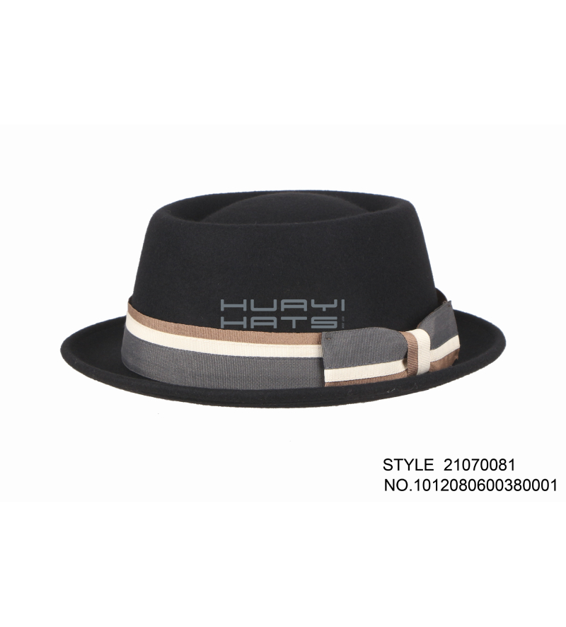 Black Wool Felt Porkpie Fedora Hat Small Brim For Mens