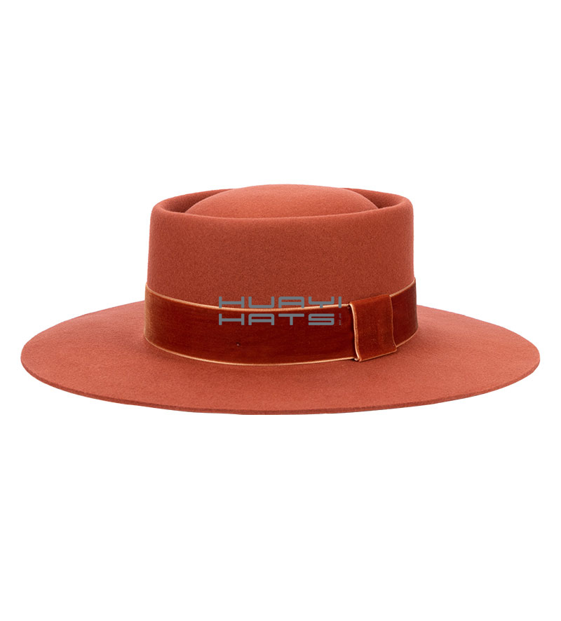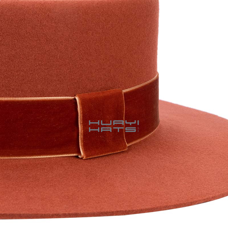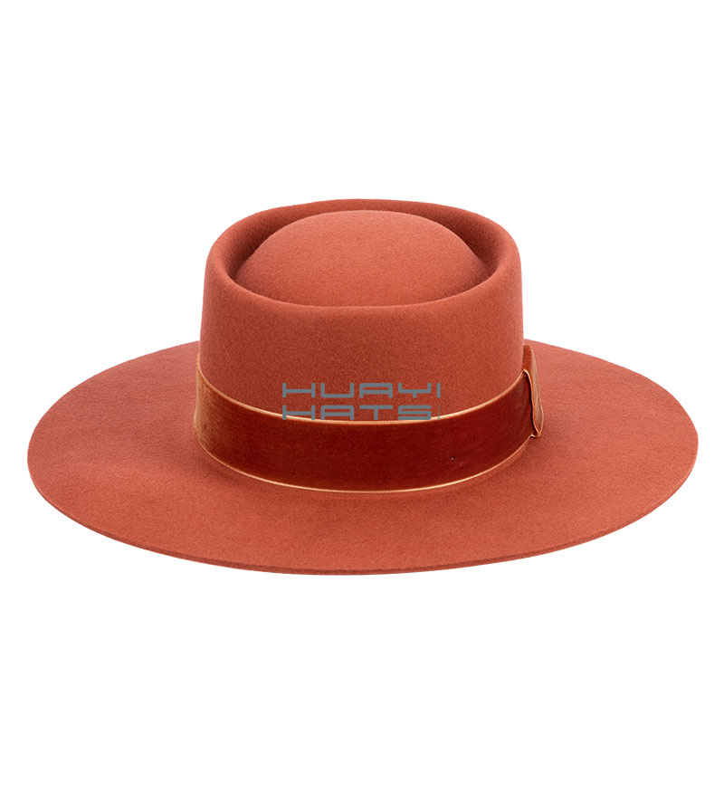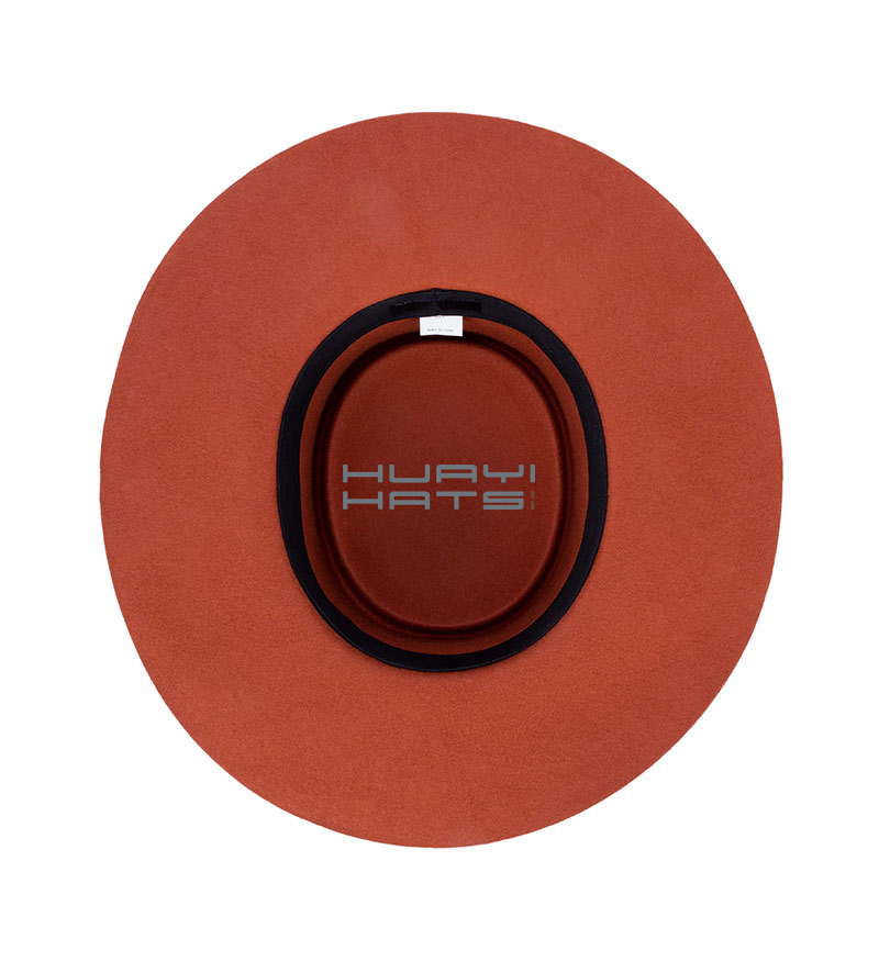 Burnt Orange Wide Brim Wool felt Pork pie Hat For Men Adjustable Sweatband