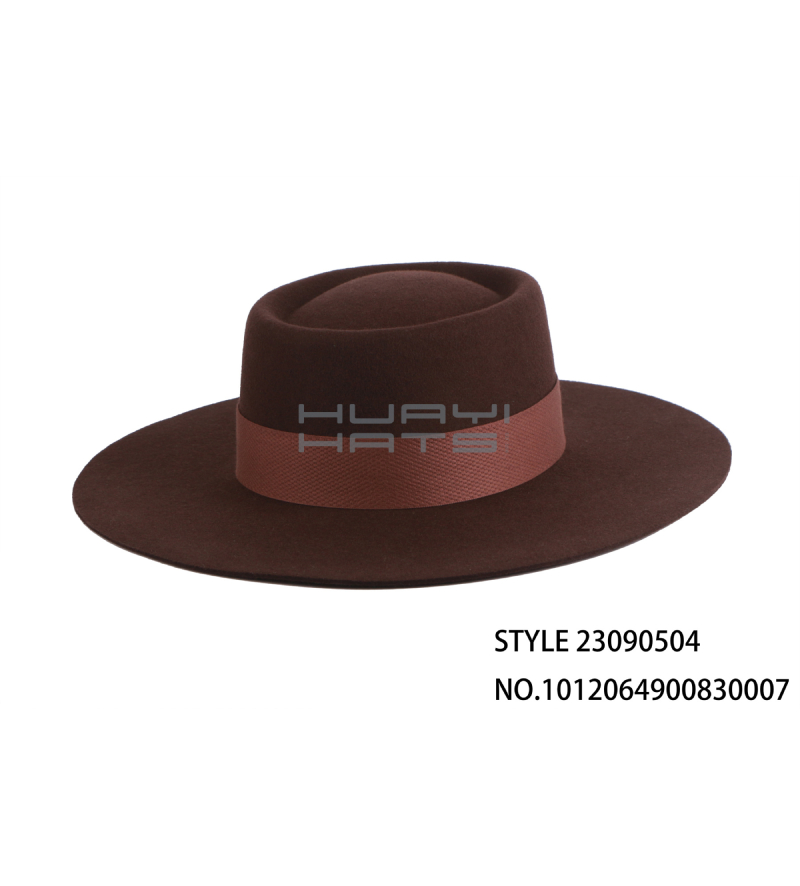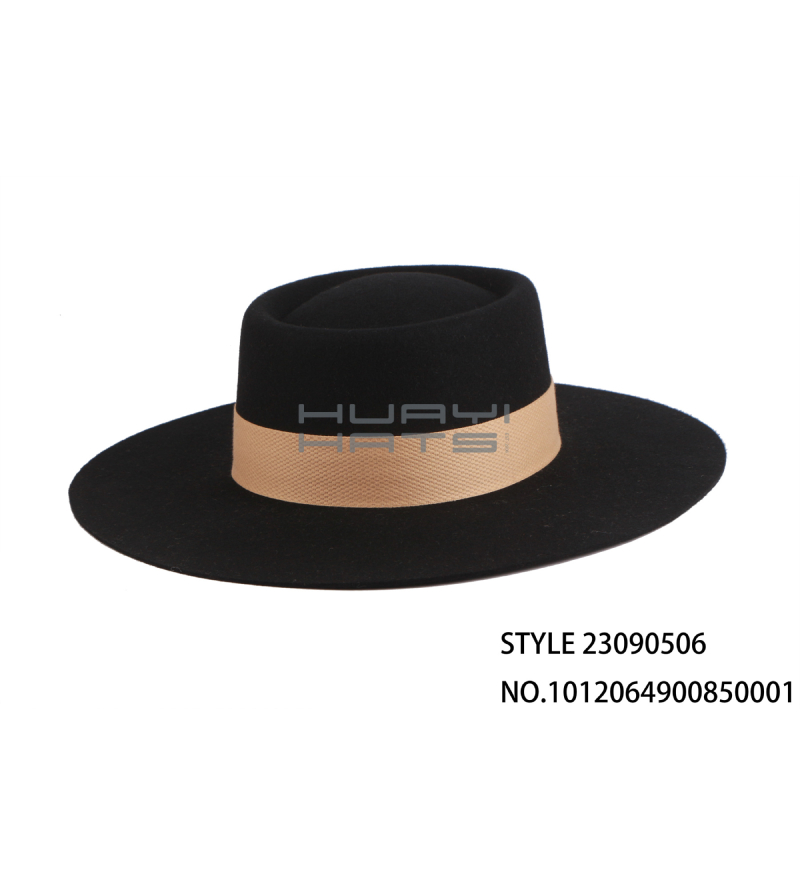 This fashion pork pie hat with wide decorative band is made of 100% Australian wool and is comfortable to wear. The wide brim design is paired with wide hatbands in different colors, making it more fashionable. This pork pie hat is available in a variety of colors, and custom purchases are welcome. Customization options, providing different shapes, colors, trims, labels, etc. to be tailored to your preference