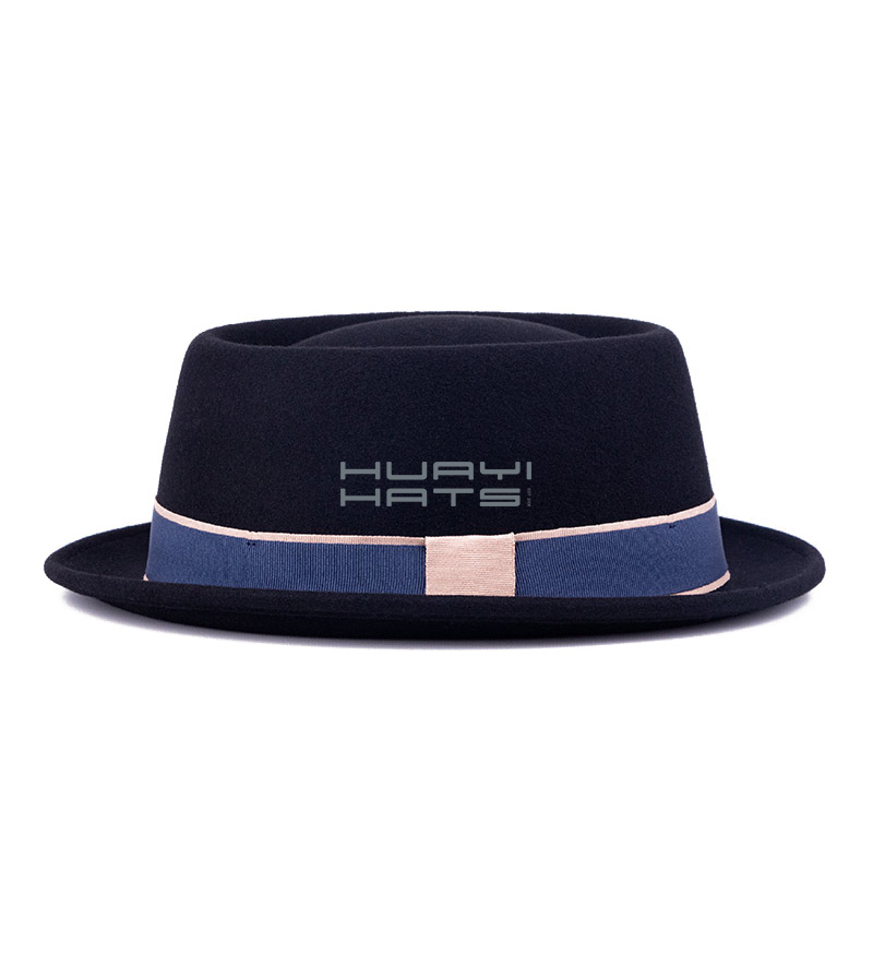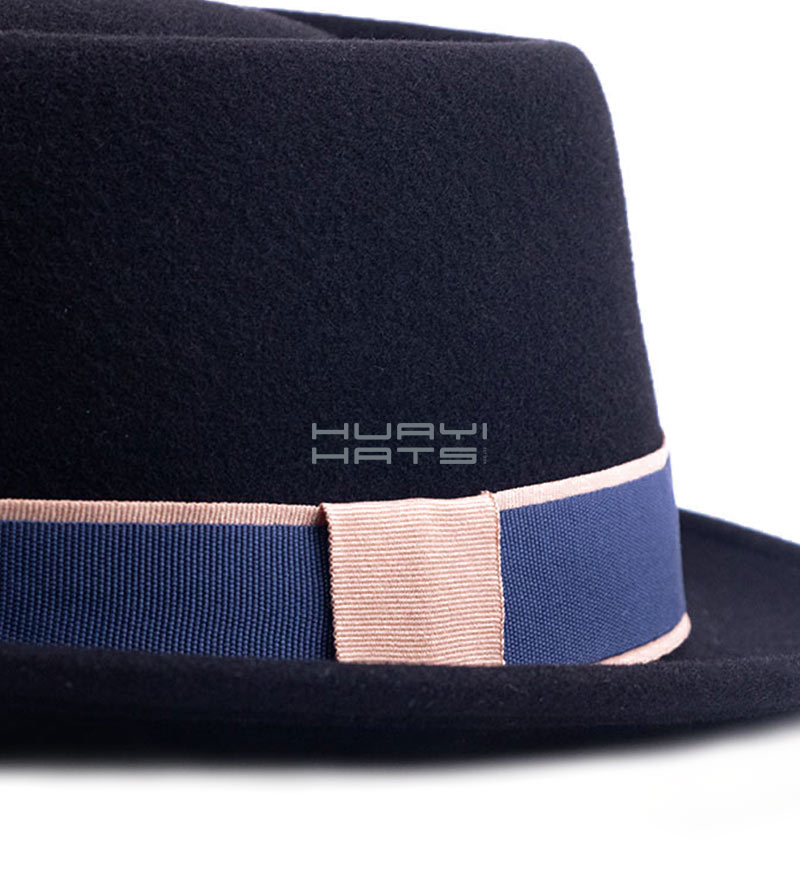 Mens Black Stingy Brim Wool Felt Pork Pie Hat With Blue Hatband