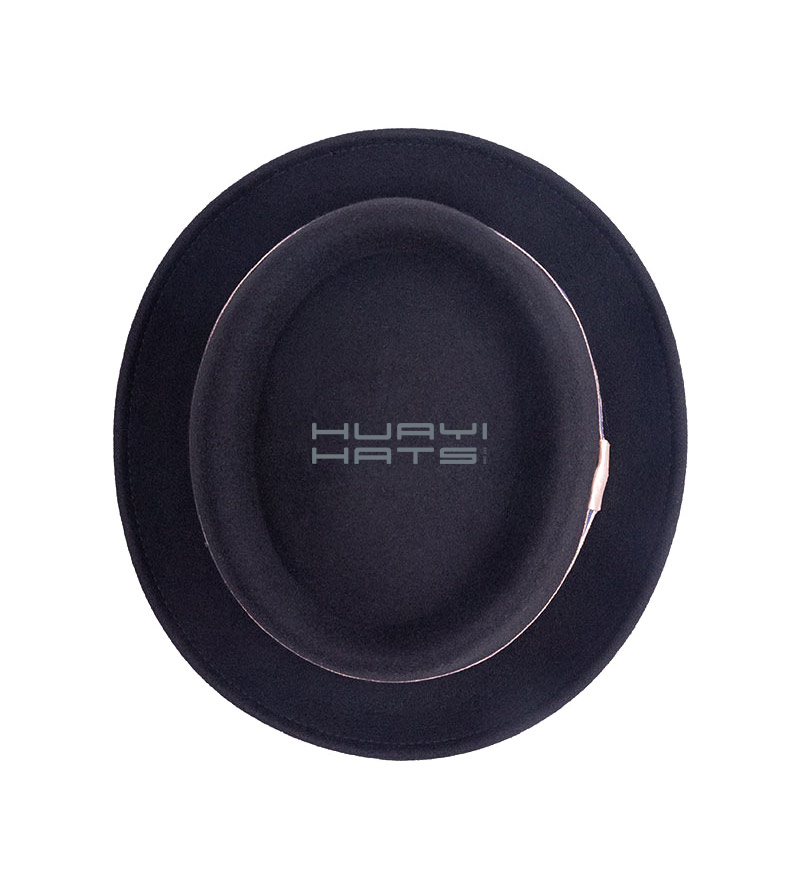 This felt pork pie hat is an affordable, high quality pork pie style made of soft 100% Australian wool felt that is both crushable and packable, making it a perfect travel companion. It features a 1 1/2 inch stingy brim. The oval telescope crown is surrounded by a classic blue ribbon hat band. The unlined interior offers a cotton inner band for comfort. The simple black design means that the hat can be combined with a variety of outfits for almost any occasion.