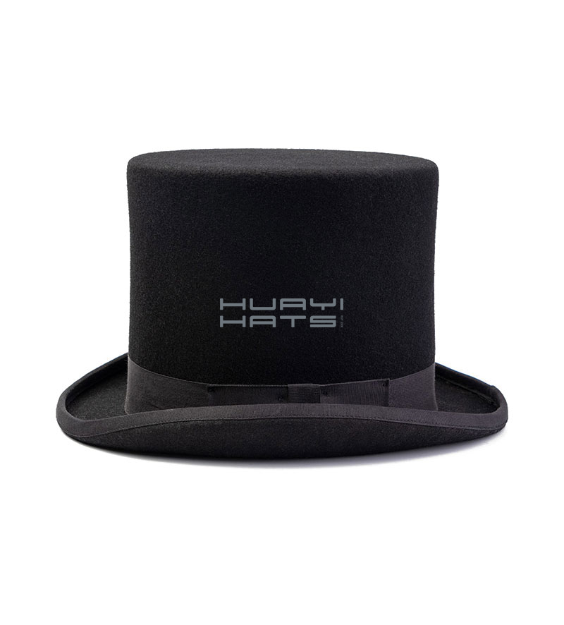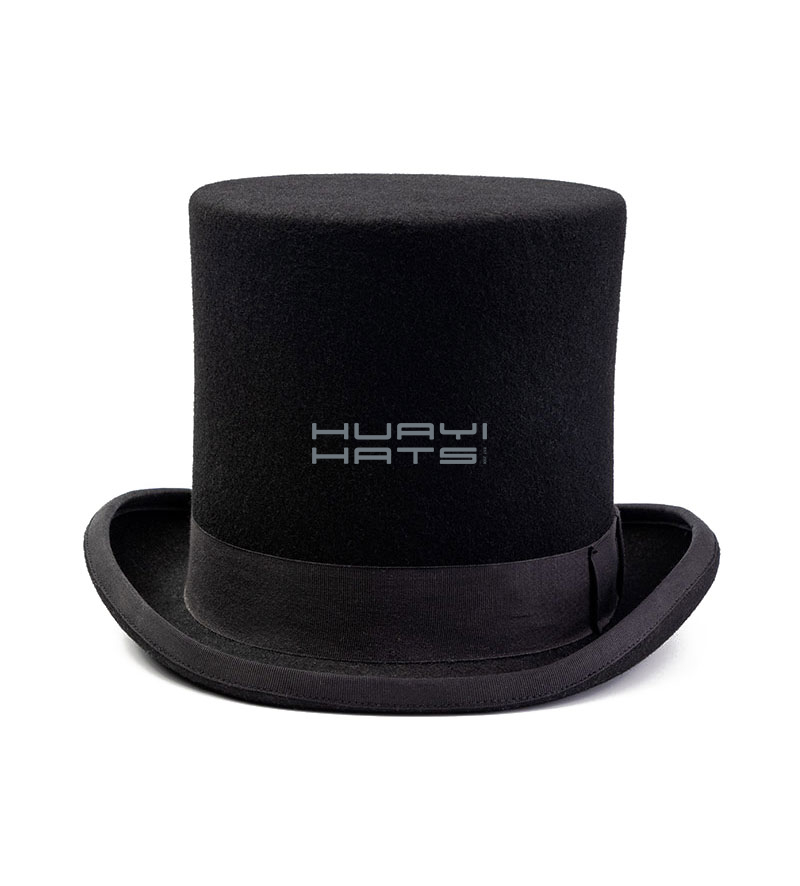 Black Wool Felt Top Hats For Men With White Satin & Black Bowknot